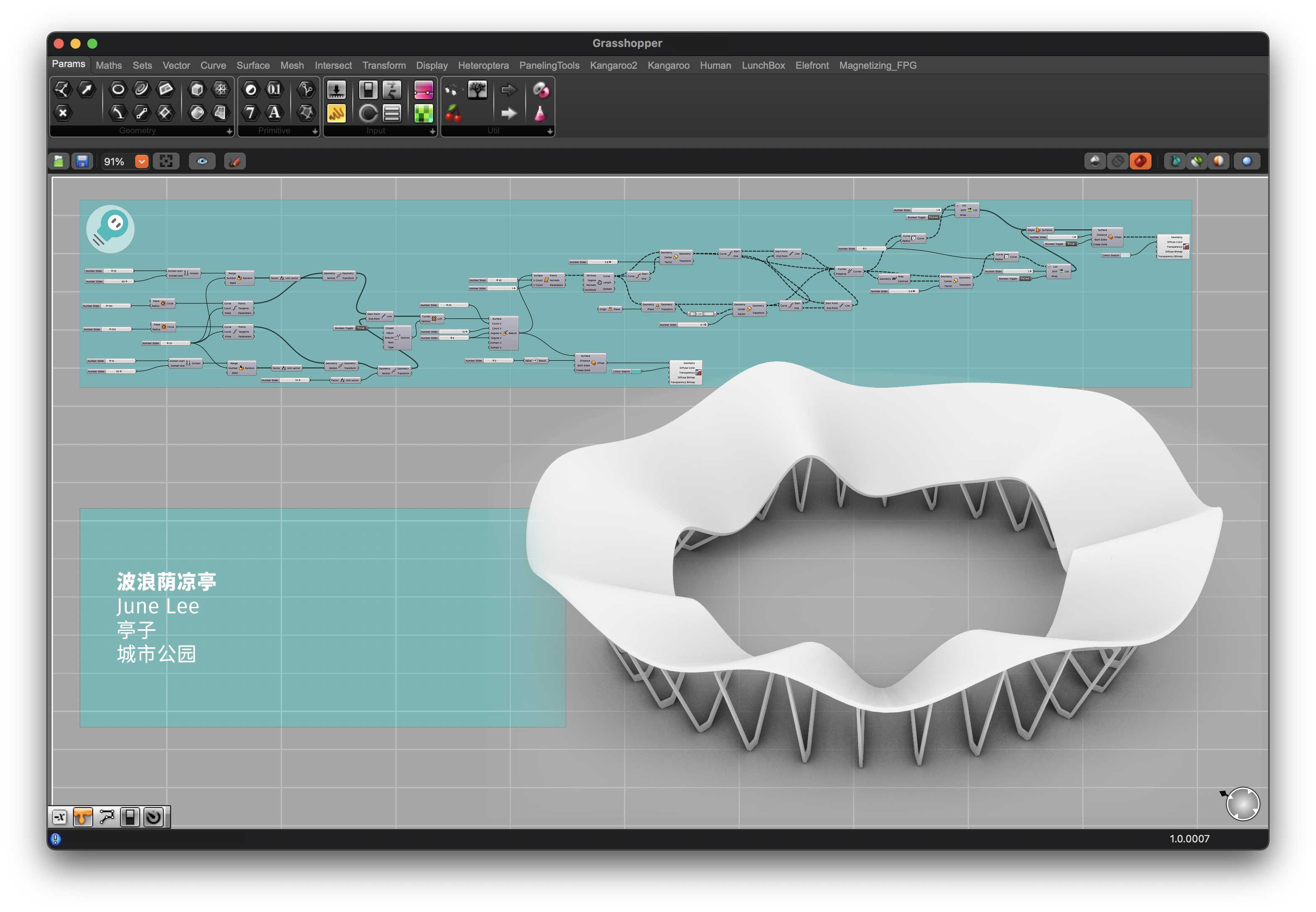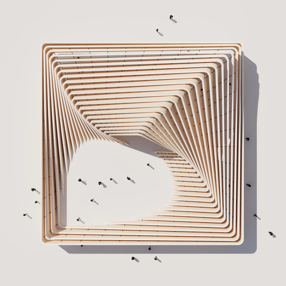 扭曲的百叶结构亭子