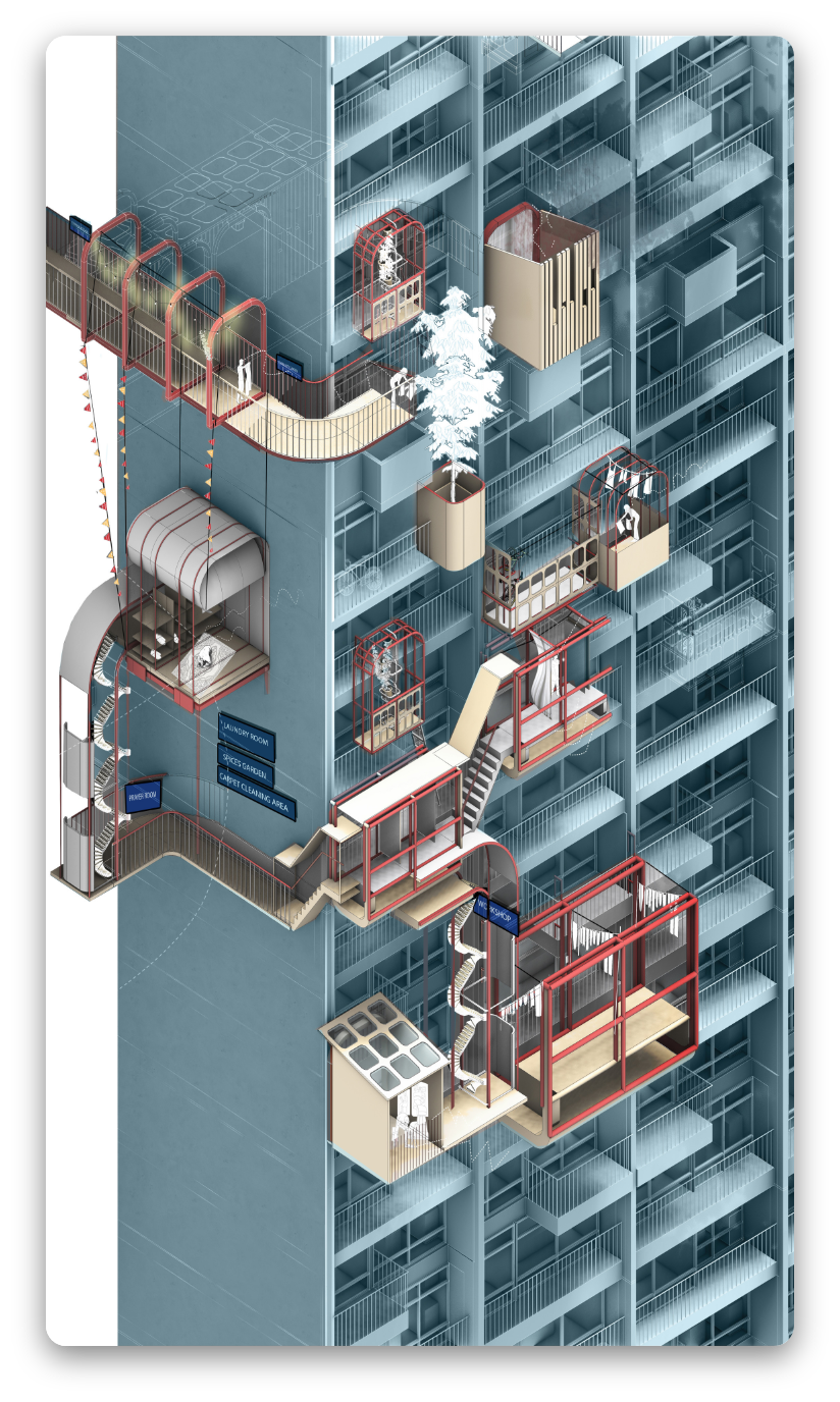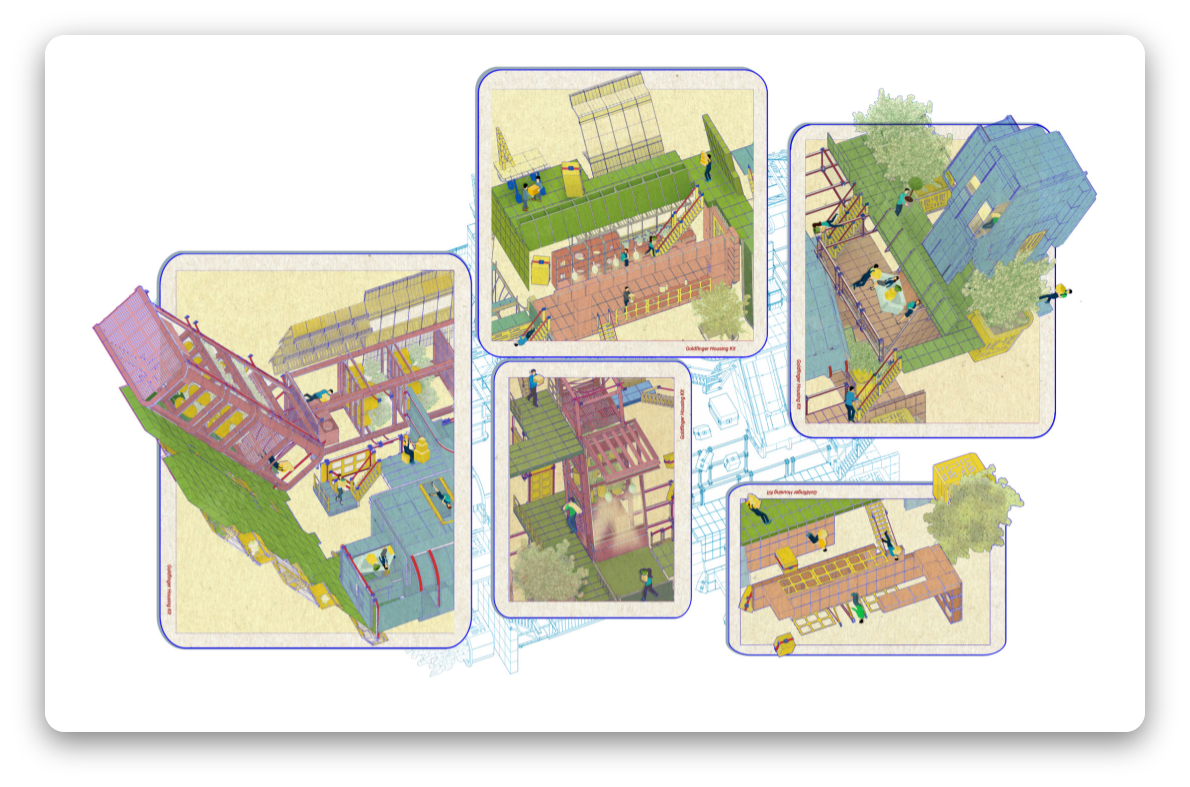 在动荡和不确定性时期,我们努力通过将梦想和愿景投射到一个更好的地方来努力摆脱困境,在这一组中认为该空间能够解决我们当前面临的所有问题和困扰–那就是我们自己的乌托邦。建筑专业的学生梦想着,他们猜测什么是“真实的”,梦想着现实生活中问题的空间表现,但这往往以非常抽象的解决方案结束。然而这些推测性建筑对于带来变革,检验新的创新思想极其重要。现代主义在当时被视为一个具有前瞻性的勇敢新世界。然而很多以乌托邦思想作为初衷的住宅区已经变成恶托邦(dystopia)的噩梦。但是有些例子经受了时间的考验,并发展成为生活,甚至繁荣的社区。他们梦想着自己的乌托邦,并利用思想中蕴含的乐观主义并将其带入可居住的空间:
