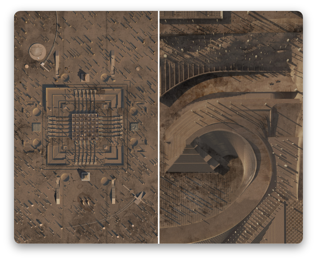 如果我们保持与列侬、罗斯他们相同的批判性思维,并设想另一种建筑环境,在没有历史遗留或迭代影响的情况下的城市主义会是什么样?正是在这种设想“另一种世界会是怎样的”的思辨过程中,PG10 的学生可以更好地理解并应对危机中的世界,从气候、资源和人性特征为决定性因素演化出张力极强的建筑项目:
